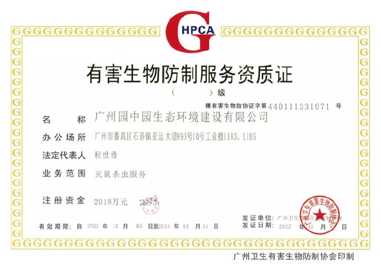 有害生物防制服務資質證